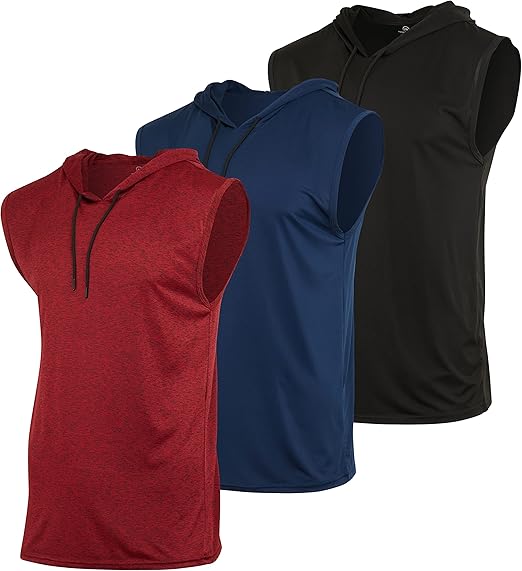 3 Pack: Mens Dry-Fit Active Hooded Tank Top - Workout Sleeveless Hoodie Drawstring (Available in Big & Tall)
