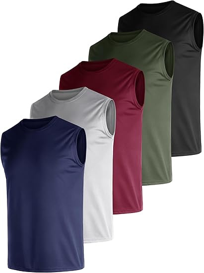 Men's 5 Pack Dry Fit Quick Dry Tech Performance Sleeveless T Shirts Mesh Workout Gym Muscle Running Tank Tops